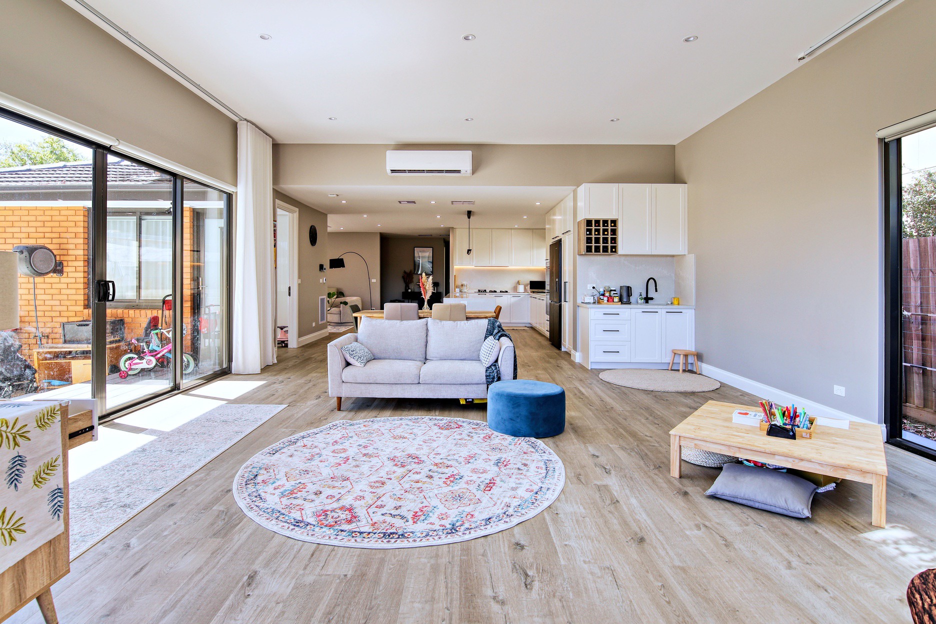 Step into the transformed Mount Waverley—a residence that has undergone a remarkable metamorphosis, blending innovative design, expansive living spaces, and meticulous attention to detail. Located in the heart of Mount Waverley, this extension project unfolded over an eight-month construction period, reaching its completion in July 2022. The result is a testament to the seamless integration of modern living within a refined suburban setting. The focal point of this transformation is the significant layout change, a strategic reconfiguration that has elevated the functionality and aesthetics of the entire property. The extension encompasses an impressive 100 sqm in total—an intricate dance between a 45sqm living room extension and a spacious 55sqm verandah area. This thoughtful allocation ensures a balance of private and communal spaces, creating a home that is as functional as it is inviting. The living room extension and verandah boast a decent open size, emphasising a sense of spaciousness and a seamless transition between the indoors and outdoors. This design choice not only enhances the overall living experience but alsoestablishes a connection with the surrounding landscape, blurring the boundaries between the interior and exterior.