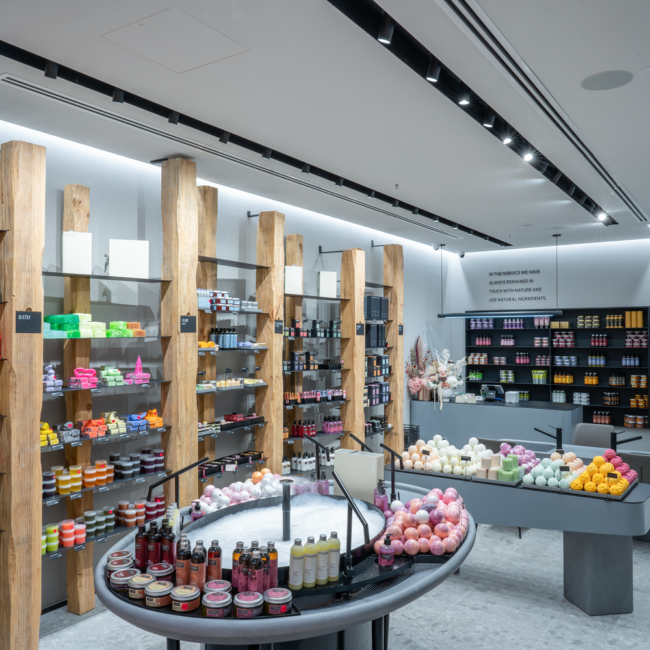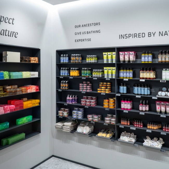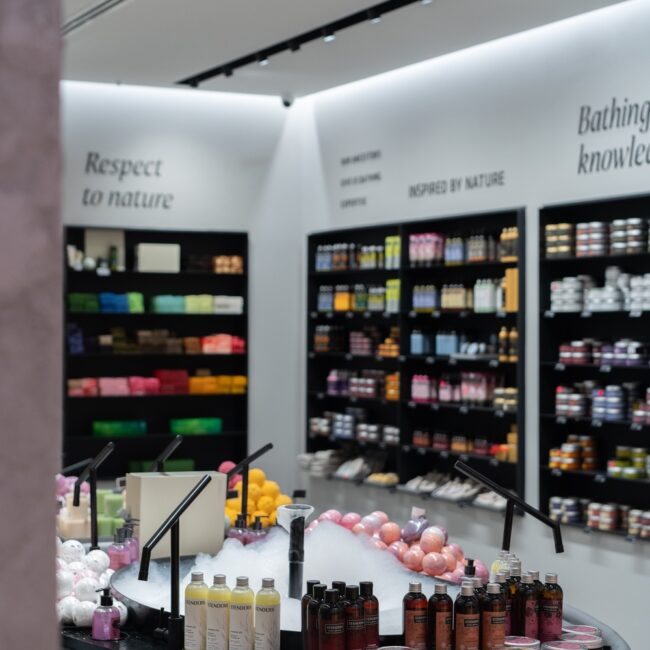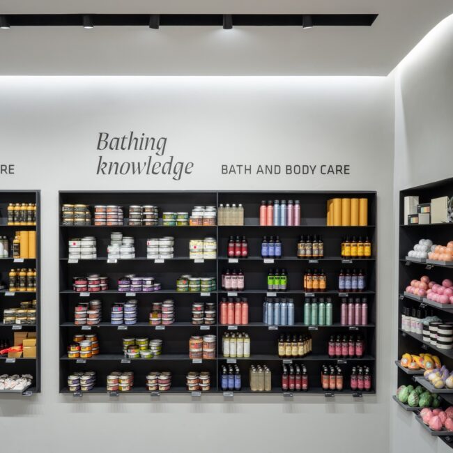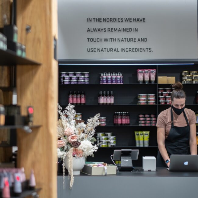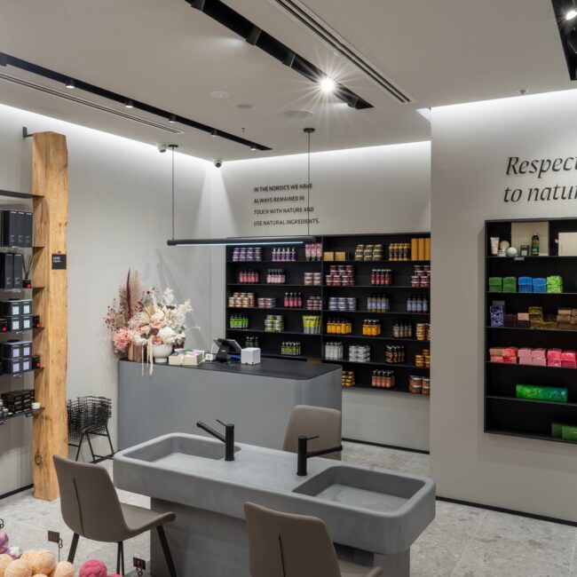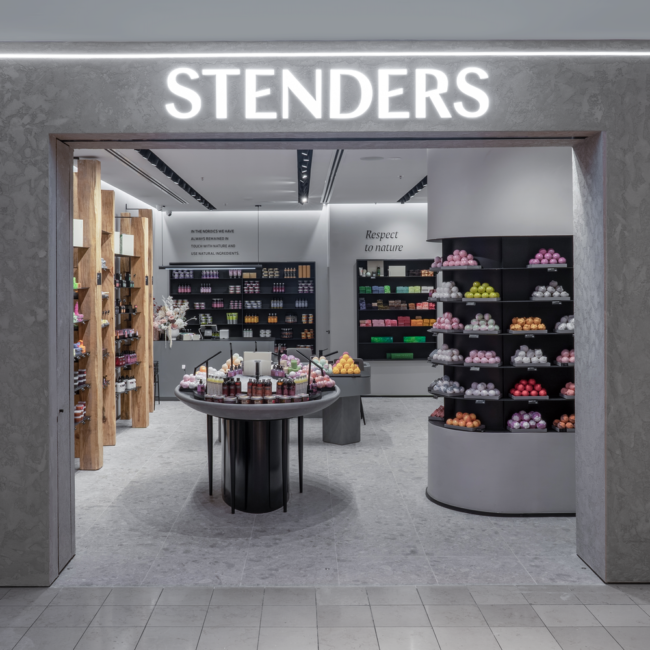 Welcome to Stenders, an oasis for bath and body cosmetics where the essence of Nordic heritage and a deep appreciation for nature converge in every corner. Our shop fit-out at Chadstone is a testament to our commitment to creating a serene and inviting atmosphere that transcends the ordinary. The colour palette chosen for Stenders reflects the calming and sophisticated ambiance of Nordic design, with apredominant grey natural tone that invites customers to step into a space of tranquillity. This choice aligns seamlessly with our ethos, echoing the calming influence of nature in each product we offer. The feature wall at the shop front serves as a captivating introduction to the Stenders experience. It not only draws attention but also sets the tone for the aesthetic journey within. The feature wall is a canvas that embodies the essence of Stenders, inviting customers to explore the wonders of bath and body care within. Inside, iron curved shelving stands as a unique and eye-catching design element. This choice reflects both strength andfluidity, mirroring the delicate balance found in nature. The grey and black interior creates a sophisticated backdrop, allowingthe products to take centre stage and shine. The success of our shop fit-out at Chadstone can be attributed to strong communication skills. Collaboration between the builder, Vicinity Center, and shop owner ensured a seamless execution of the vision. Full set documentation was meticulously organised to oversee every aspect of the project, leaving no detail unattended.